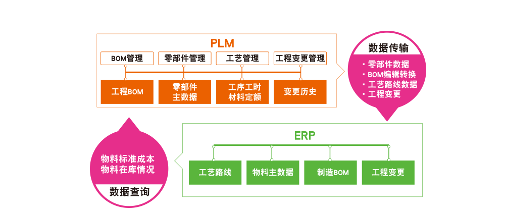 ※ 快速將物料、BOM、工程變更等數(shù)據(jù)自動(dòng)的傳遞給ERP,快速為生產(chǎn)準(zhǔn)備好基礎(chǔ)數(shù)據(jù):